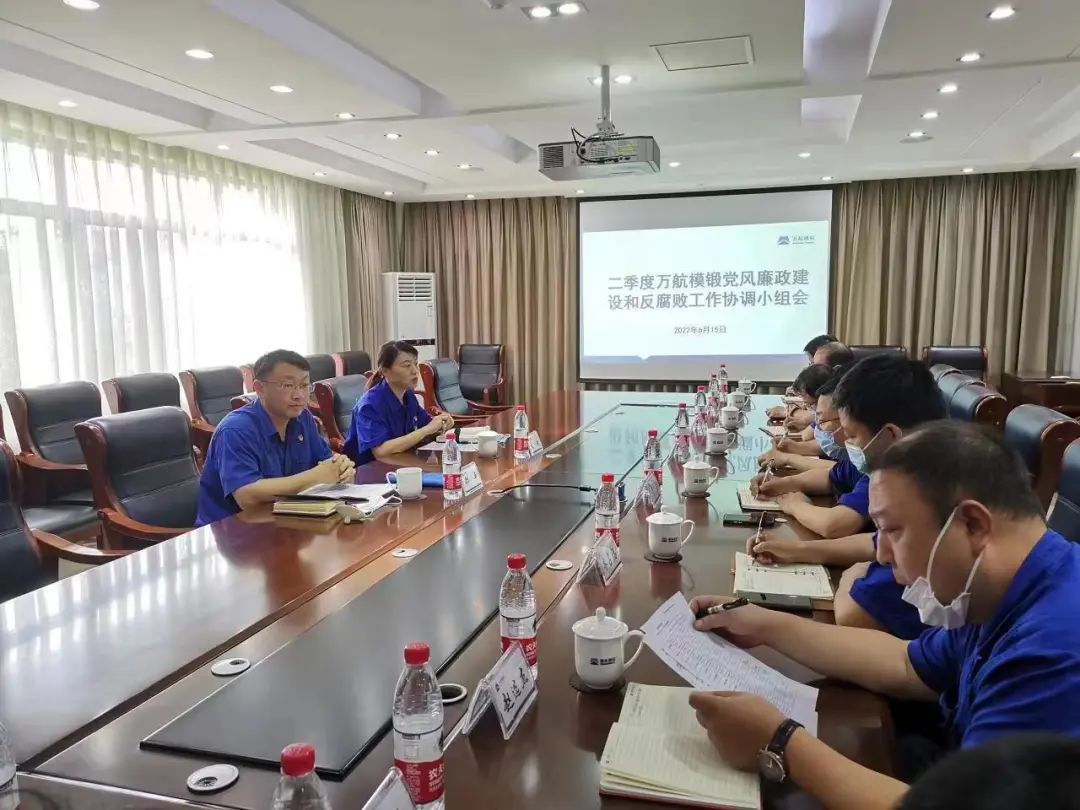 近日,萬航模鍛黨委召開黨風(fēng)廉政建設(shè)和反腐敗工作協(xié)調(diào)小組會。受黨委書記、董事長毛天宏委托,黨委副書記、紀(jì)委書記彭虹主持會議,公司黨風(fēng)廉政建設(shè)和反腐敗工作協(xié)調(diào)小組各成員部門負(fù)責(zé)人參加會議。