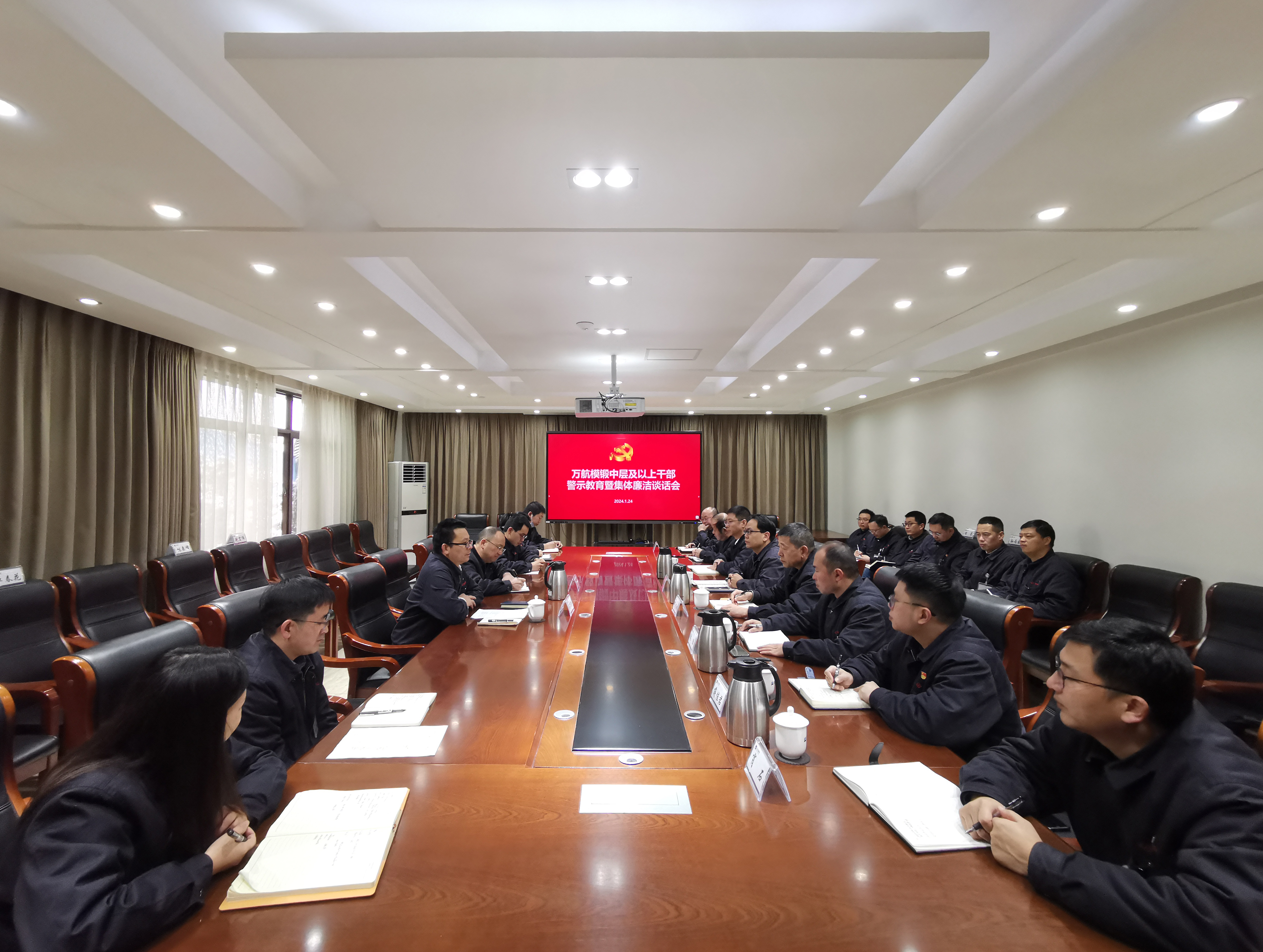 近日,萬航模鍛組織中層及以上管理人員開展警示教育及集體廉潔談話。國(guó)機(jī)重裝黨委委員、紀(jì)委書記陳萬隆出席會(huì)議并講話。中國(guó)二重副總經(jīng)理,萬航模鍛黨委書記、董事長(zhǎng)向彪主持會(huì)議。