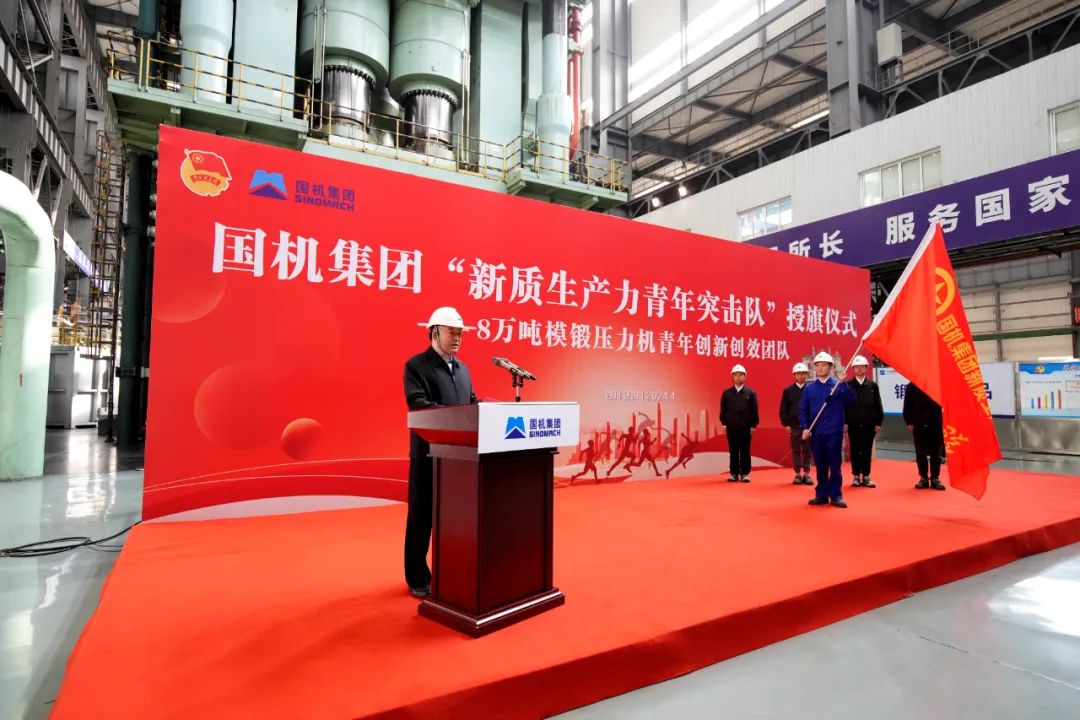 為進一步貫徹落實黨中央部署,動員和引領廣大國機青年鍛造國機所長、服務國家所需,爭當培育和發(fā)展新質(zhì)生產(chǎn)力、扎實推進企業(yè)高質(zhì)量發(fā)展的先鋒隊、生力軍,4月2日,國機集團黨委在國之重器——8萬噸模鍛壓力機生產(chǎn)現(xiàn)場,舉行國機集團首支“新質(zhì)生產(chǎn)力青年突擊隊”授旗儀式。集團黨委書記、董事長張曉侖為8萬噸模鍛壓力機青年創(chuàng)新創(chuàng)效團隊授旗。集團黨委常委、副總經(jīng)理周開荃出席。