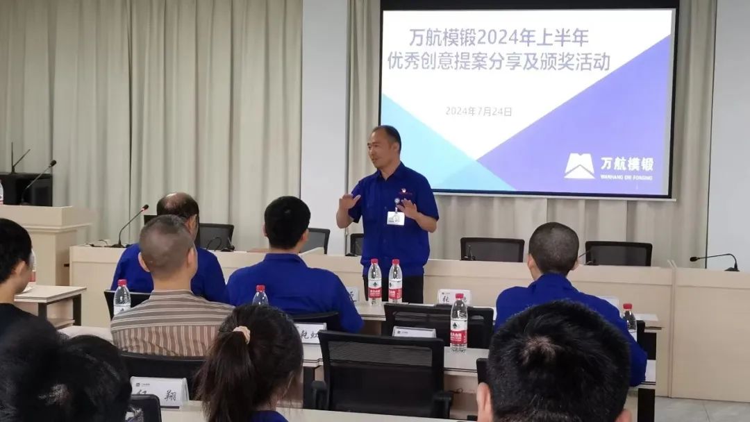 近日,萬航模鍛召開2024年上半年優(yōu)秀精益創(chuàng)意提案分享暨頒獎(jiǎng)儀式。副總經(jīng)理張鵬出席會(huì)議并講話,副總經(jīng)理蔣佳君,總經(jīng)理助理肖石出席會(huì)議。