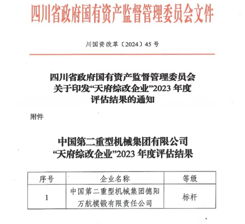 近日,四川省國資委發(fā)布“天府綜改企業(yè)”2023年度評估結果,繼2022年獲評“優(yōu)秀”等級后,萬航模鍛在2023年度全省100戶“天府綜改企業(yè)”中成功獲評A級(標桿)等級。