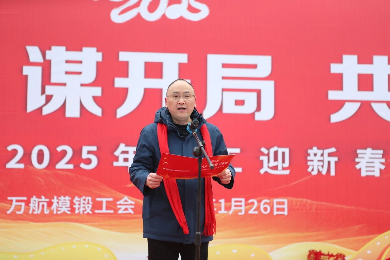 1月26日,萬航模鍛舉辦2025年“聚合力、謀開局、共奮進”職工迎新春活動。中國二重副總經(jīng)理,萬航模鍛黨委書記、董事長向彪作新春致辭,代表公司黨政班子向全體職工及家屬致以新春問候,期待在2025年與全體職工一起同向奔赴“實現(xiàn)航空重要鍛件國產(chǎn)化”的新征程,始終把“目標”刻在心上,把“擔當”銘記心中,為建設世界一流航空模鍛件供應商而努力奮斗!