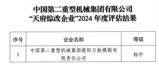 近日,四川省政府國有資產(chǎn)監(jiān)督管理委員會(huì)公布了“天府綜改企業(yè)”2024年度評(píng)估結(jié)果,萬航模鍛在全省100戶“天府綜改企業(yè)”中脫穎而出,再次獲評(píng)“標(biāo)桿”企業(yè)。