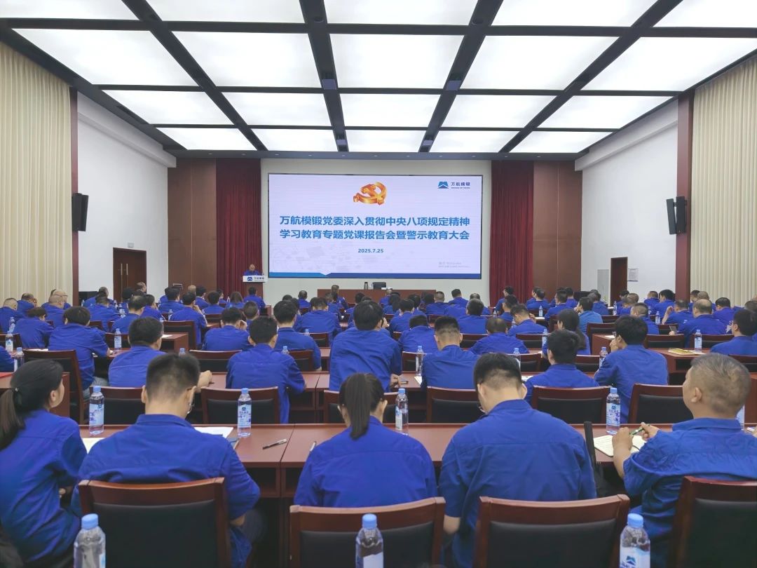 7月25日,萬航模鍛黨委召開深入貫徹中央八項規(guī)定精神學習教育專題黨課報告會暨警示教育大會。中國二重黨委委員、副總經理,萬航模鍛黨委書記、董事長向彪以《以永遠在路上的恒心和韌性,一刻不停推進作風建設》為題作專題黨課報告,并開展警示教育。萬航模鍛黨委委員、副總經理張鵬主持會議。