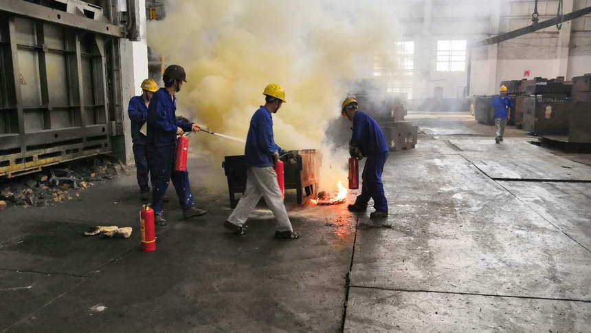 16:02分,應(yīng)急隊員接到險情通知后,立刻趕到1MJ火災(zāi)現(xiàn)場匯同現(xiàn)場人員實施救援。一、二搶險組利用現(xiàn)場滅火器材對火災(zāi)進行直接撲滅;保安組負責(zé)疏散現(xiàn)場人群,維護現(xiàn)場次序,保證了通道口暢通;油泵設(shè)備巡查組負責(zé)檢查1MJ、50MN泵站情況......16:09分,經(jīng)過短短幾分鐘的努力,模鍛廠1MJ跨火災(zāi)已經(jīng)完全撲滅,在整個演練過程中,各小組流程清晰,職責(zé)明確、反應(yīng)迅速、處置得當(dāng)、配合默契、銜接有序,全面完成了既定演練每一個項目,圓滿完成了此次演練任務(wù),達到了演練的預(yù)期目標。
