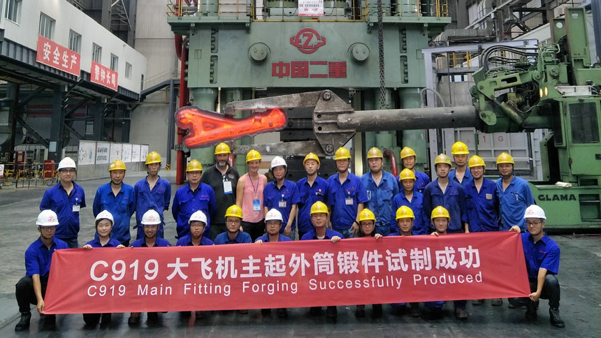 2018年7月21日,二重萬航公司承擔的C919大飛機主起外筒鍛件成功通過中國商飛、德國利勃海爾公司技術和質量專家為期10天的聯合現場審核,C919大飛機國產化研制工作取得重大突破。