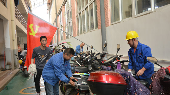 11日15時,模鍛廠黨支部77名黨員準時集合到模鍛廠2#3#職工休息樓前。隨即,支部李蓬川書記一令下,全體黨員立即行動起來,維修的、浸水的,擦灰塵的,擦干的,加油的……責任明確、分工明細,協(xié)作推進,迅速形成了火熱的服務場面。經(jīng)過全體黨員近2個小時的熱情服務,共計為職工擦洗自行車、電瓶車80余輛,維修自行車、電瓶車10余輛,用實際行動表達了模鍛廠黨組織為職工謀幸福的初心。(唐世兵)